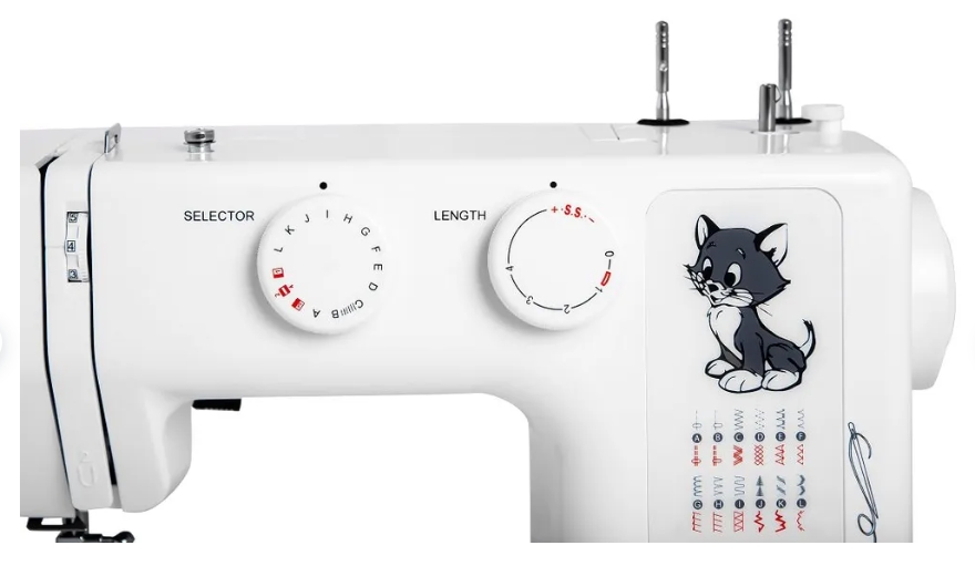Функциональные особенности швейного оборудования: Подсветка рабочей зоны, Реверс, Регулятор длины стежка, Русифицированное меню, Шитье двойной иглой