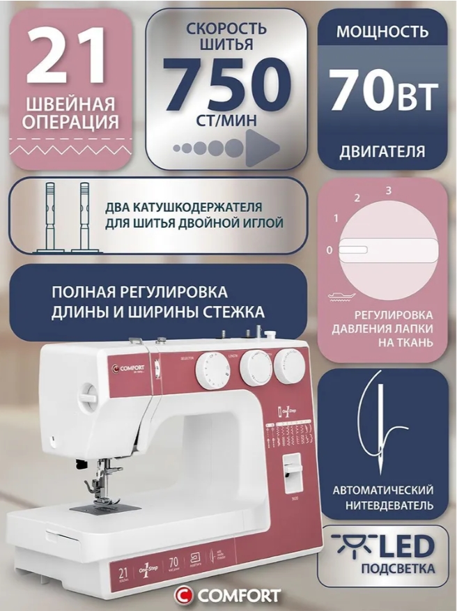 Швейная машина Comfort 3020 – это идеальное решение для любых швейных задач, от создания простых вещей до сложных проектов. Эта механическая машинка сочетает в себе надежность и простоту в использовании, что делает её подходящей как для новичков, так и для опытных пользователей.