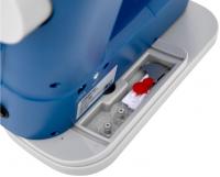 Управление осуществляется либо с помощью педали, которая входит в комплектацию швейной машинки, либо с помощью специального переключателя на корпусе. Он имеет три фиксируемых положения «Стоп», «Медленно» и «Быстро». Пользователь, соответственно может сам выбрать как ему удобней управлять шитьем. Либо педалью, либо без педали, переключая скорости на корпусе. Что характерно, функция шитья без педали обычно доступна только в сегменте дорогих электронных швейных машинок. А в доступной ценовой нише очень редкая возможность. Направления шитья «реверс» меняется очень удобным рычагом на корпусе.
