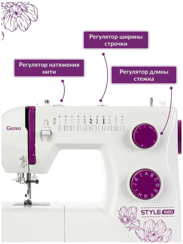 Вид строчки: Зигзаг, Декоративная эластичная строчка, Декоративная строчка, Открытая имитация оверлочной строчки, Петля-автомат, Потайная строчка, Прямая строчка, Трикотажная строчка, Тройная усиленная прямая строчка, Тройной усиленный зигзаг, Фестонный шов, Эластичный зигзаг