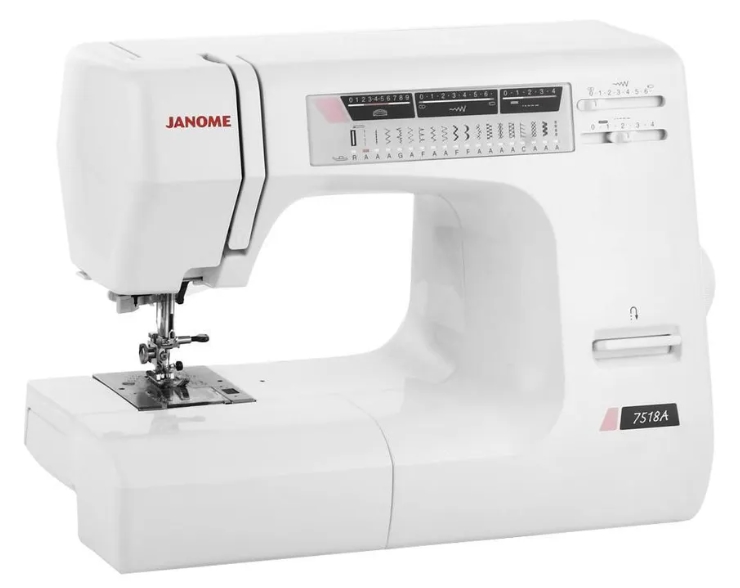 Швейная машина Janome 7518 A выполняет практически все необходимые для повседневного шитья строчки, среди которых несколько оверлочных и несколько строчек для работы с трикотажем.