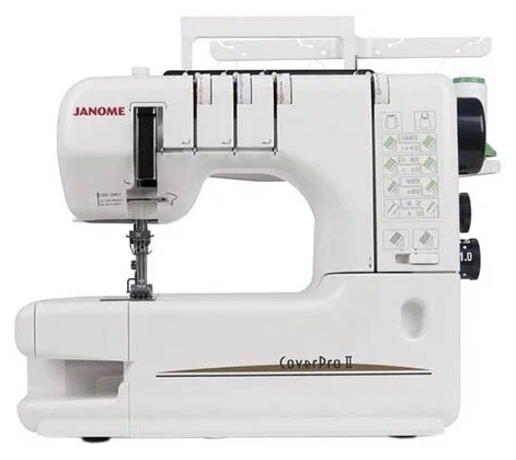 Электромеханическая распошивальная машина Janome Cover Pro 2 ориентирована на выполнение большого количества операций. С ней можно использовать 4 нити, за натяжение которых отвечает настраиваемый вручную контроллер. Лапка в изделии подъемная, с диапазоном высоты до 8 мм. Рукавная платформа съемная, включена в комплектацию. Конструкция устройства проста в обслуживании. Скорость шитья – 1000 строчек/мин.
