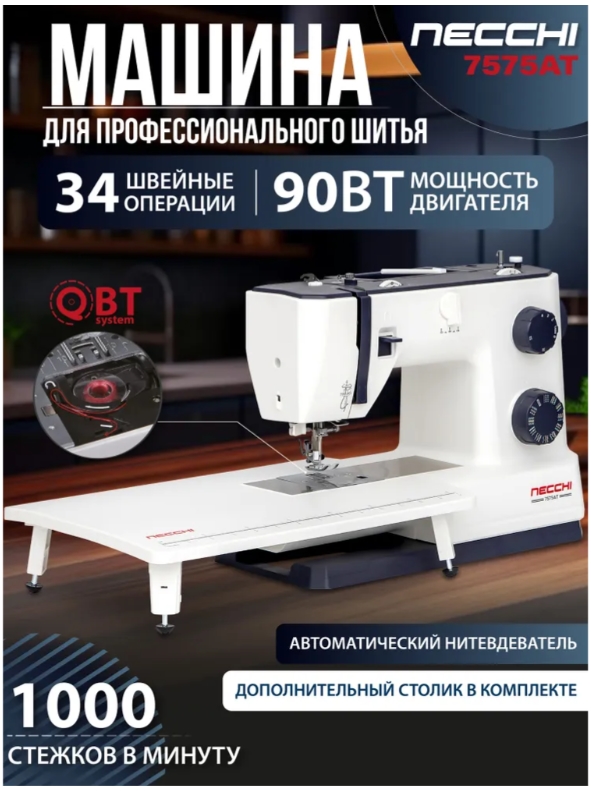 Профессиональная машина для работы в условиях повышенной нагрузки. Мощный мотор в 90 Вт позволяет шить со скоростью шитья до 1000 строчек в минуту.