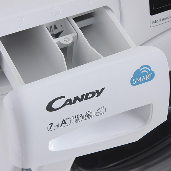 Стиральная машина Candy Smart CS4 1172D1/2-07 поддерживает технологию интеллектуального управления. Она снабжена модулем NFC, который может распознавать программы, составленные в специальном приложении для смартфона и переданные с помощью беспроводной связи.