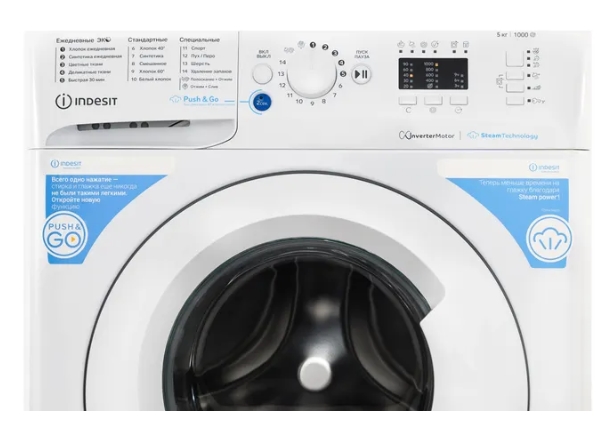 Загрузка 5 кг, 1000 об/мин, LED+ индикация, Тип мотора: инверторный, Технология Push & Wash, Датчик баланса воды WaterBalance Plus - регулировка расхода воды, 16 программ стирки. Специальные программы: Шерсть, Спорт, Пух/Перо, Удаление запахов. 5 программ Ежедневные 30 градусов Eco. Функции : Пятна, Дополнительное полоскание, Легкая глажка. Таймер отсрочки запуска (ч) : 3, 6, 9. Функция «Защита детей». Класс энергоэффективности А. Класс энергопотребления А-20%*. *на данное количество процентов показатели энергоэффективности лучше, чем у класса "А", определенного нормативными документами Российской Федерации.