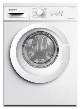Стиральная машина Kraft KF-EN6104W с загрузкой белья до 6 кг, оснащена 23 программами стирки, максимальной скоростью отжима составляет 1000 оборотов в минуту.  Модель обладает функциями отложенного старта, системой защиты от перелива и блокировкой от детей, автоматическим перераспределением белья, контролем пенообразования и автоочисткой. Модель весьма экономична в отношении потребления воды: расход воды за одну стирку не превысит 48 л.