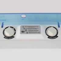 В Renova WS-65PE (LITE) вещи загружаются вертикально, что позволяет наиболее рационально задействовать каждый сантиметр полезного пространства вокруг. При изготовлении корпуса использован прочный полипропилен – он не желтеет со временем и не подвергается коррозии. Эргономичные ручки облегчают переноску прибора, да и его вес не превышает 11,5 кг.