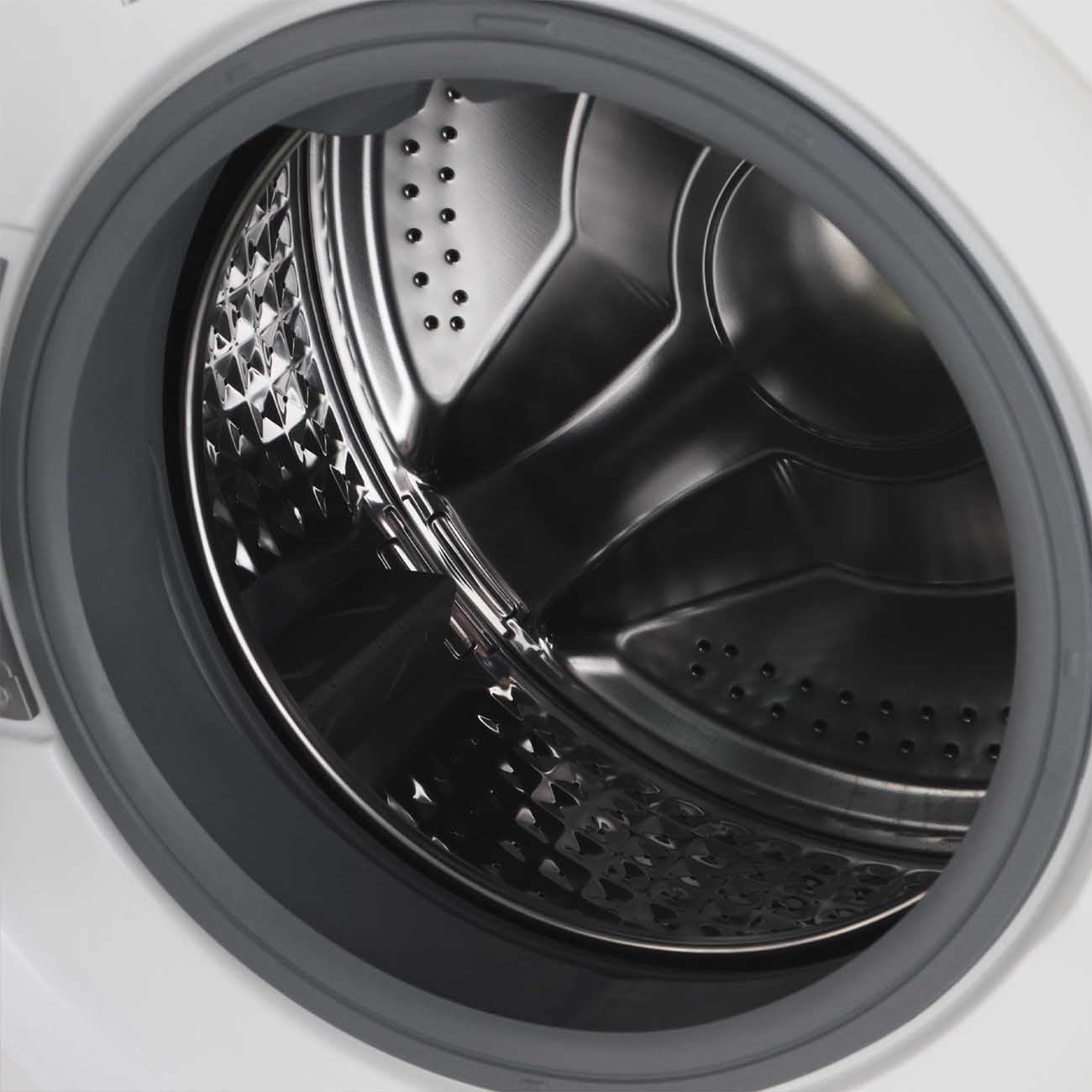 Стиральная машина компании Samsung представляет собой универсальное устройство, совмещающее в себе все необходимые функции: стирку, сушку и использование пара. В режиме стирки модель позволяет загружать максимум 7 кг белья и развивает скорость до 1400 оборотов в минуту при отжиме, а вот сушит за один цикл меньше вещей — до 5 кг. При этом «сердцем» прибора стал инверторный мотор, который более энергоэффективен, меньше шумит и имеет большой рабочий ресурс, поэтому его гарантийный срок составляет 10 лет. Не обошлось и без фирменного генератора EcoBubble, превращающего моющее средство в пузырьки для более деликатной стирки и удаления пятен и загрязнений. Всего Samsung WD70T4047CE предлагает 12 программ, наиболее интересными из которых являются гигиеническая очистка с помощью пара для удаления бактерий и аллергенов и освежение Air Wash без стирки и порошка. В последнем случае используется горячий воздух, который освежает одежду, устраняет неприятные запахи и 99,9% бактерий. А функция Drum Clean позаботится о чистоте барабана, очищая его с помощью сильной пульсирующей струи. При желании окончание стирки можно отсрочить, чтобы белье было чистым к назначенному времени. Конечно, все эти возможности машины сказались на ее потребностях и габаритах: они составляют 85, 60 и 55 см в высоту, ширину и глубину, а за один цикл расходуется целых 98 литров воды.