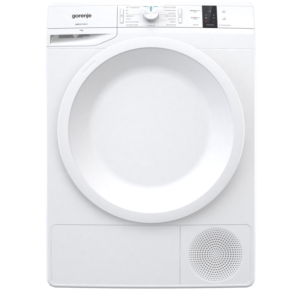 Gorenje DP7B – сушильная машина конденсационного типа, в которую можно загрузить до 7 кг белья. Она сделает вещи сухими, не допуская при этом избыточной влажности в помещении.
