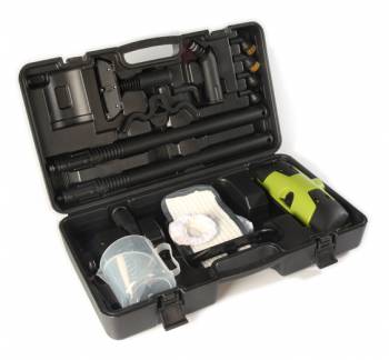 Принадлежности в комплекте бокс для насадок и принадлежностей, воронка, мерная чашка, круглая латунная щетка - 2 шт, круглая нейлоновая щетка - 2 шт, скребок для стекла, тряпка для отпаривания, щетка для отпаривания, тряпка для пола - 2шт, удлинительная трубка - 2шт