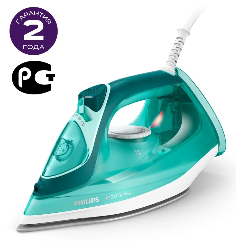Система "капля-стоп" предотвращает протекание, вы можете гладить при любой температуре, не беспокоясь о появлении пятен воды на одежде.