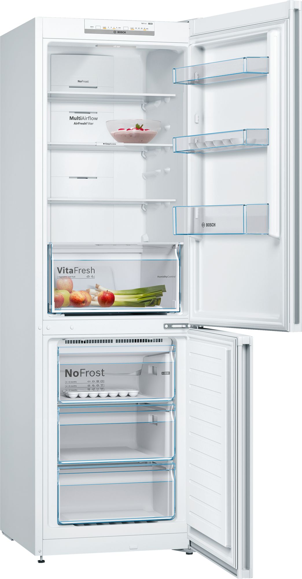 Холодильники Bosch с технологией VitaFresh сохраняют свежесть продуктов до 3-х раз дольше, поддерживая оптимальную температуру и уровень влажности.