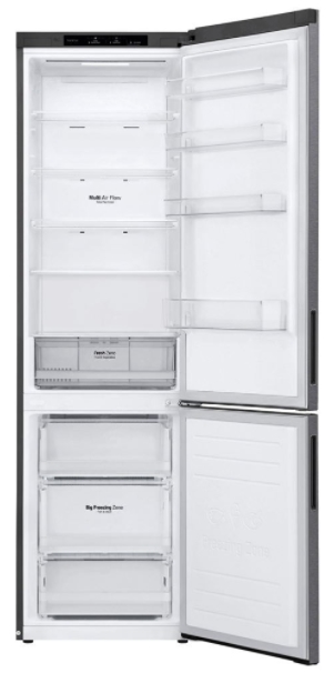 Выполненный в графитовом цвете 2-камерный холодильник корейской марки LG в фирменной иерархии находится на стыке среднего и высшего класса. Агрегат получил инверторный компрессор, на который действует 10-летняя официальная гарантия, и два контура охлаждения. Последняя особенность вместе с внутренним сенсорным управлением обеспечивает гибкую независимую регулировку температур в двух камерах. Холодильник LG GA-B509CLCL при высоте в 203 см имеет полезный объем 384 литра, не требует разморозки (система Total No Frost) и порадует тихой работой (до 36 дБ). В 277-литровом холодильном отделении нашлось место для нулевой камеры (зоны свежести), четырех открытых полок и дверных карманов. Повысить стабильность температуры внутри должна технология обдува дверей DoorCooling+. 107-литровая морозилка представлена тремя выдвижными контейнерами. В них за сутки можно заморозить до 12 кг продуктов, в том числе благодаря режиму экспресс-заморозки. Из других особенностей стоит выделить энергопотребление класса A+ (325 кВт*ч), способность сохранять холод до 15 часов при отключении электричества и наличие индикацию закрытия дверцы.