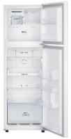 Относительно невысокий холодильник (высота корпуса 164 см) южнокорейской торговой марки Samsung предусматривает компоновку с верхним расположением морозильной камеры. Агрегат в фирменной иерархии относится к младшим решениям, но в то же время поддерживает систему охлаждения All-Around Cooling и авторазморозку Full No Frost. Также он оснащен надежным инверторным компрессором, который позитивно сказывается на экономичности работы (класс A+ и 253 кВт*ч). Холодильник Samsung RT25HAR4DWW имеет полезный объем в 255 литров, что способно удовлетворить потребности небольших семей. 202-литровая холодильная камера предусматривает отдельный бокс для фруктов и овощей с возможностью регулировки влажности (зона влажности), а также практичную выдвижную полку Easy Slide. Последняя упростит доступ к сильно заставленным продуктам. Относительно небольшой 53-литровый морозильник кроме двух открытых отсеков, разделенных пластиковой полкой, имеет генератор льда. Также тут находятся два дверных кармана. Органы управления представлены традиционными поворотными переключателями.