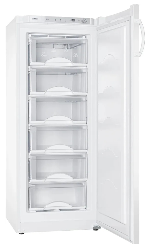 Морозильная камера АТЛАНТ М 7203-100 имеет класс энергопотребления: А+. Она  обладает отличной мощностью замораживания - 24 кг/сут и довольно большим  объемом - 198 л, что позволит вам быстро и качественно заморозить большое  количество продуктов. А 6 удобных и вместительных ящиков помогут с легкостью  распределить их по всей камере. При этом камера имеет довольно низкий  уровень шума: 39 дБ. Морозильная камера АТЛАНТ М 7203-100 имеет функцию  быстрого замораживания, возможность перевешивания двери и довольно  компактные габариты устройства и позволят с легкостью  вписать данную модель в любой интерьер вашей кухни или поставить в кладовую  комнату.