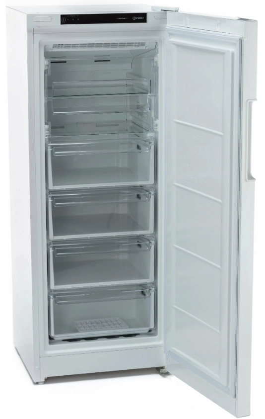 Морозильный шкаф Indesit DFZ 4150 объемом 204 состоит из 6 отделений. Несмотря на такую потрясающую вместительность, модель занимает минимум места в доме (150x60x64 см). Она позволяет подготовить к длительному хранению и заморозить до -24° овощи, фрукты, домашние полуфабрикаты. Размораживать и очищать камеру вручную не придется – она имеет покрытие No Frost.