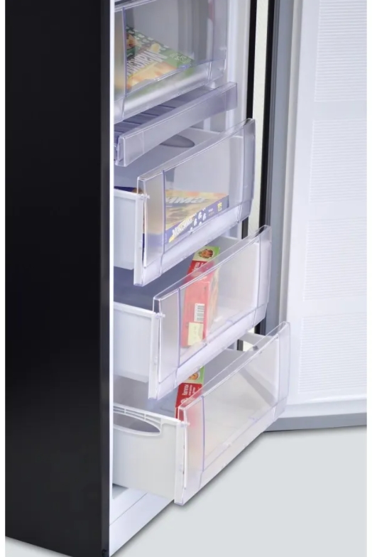 Вы сможете легко хранить множество продуктов, не опасаясь за нехватку места. Красивый дизайн поможет вписаться в любой интерьер. Полки выполнены из ударопрочного стекла, что позволяет им выдерживать значительные нагрузки.