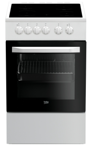 Отдельностоящая электрическая плита шириной 50 см оснащена стеклокерамической варочной поверхностью с 4 конфорками и удобным механическим управлением с индикацией работы. Электрический духовой шкаф работает в режимах верхнего и нижнего нагрева и имеет функцию очистки паром для легкого ухода за плитой. В комплектацию плиты входят стандартный эмалированный противень и решетка, а внизу расположен отсек с откидной крышкой для хранения посуды.