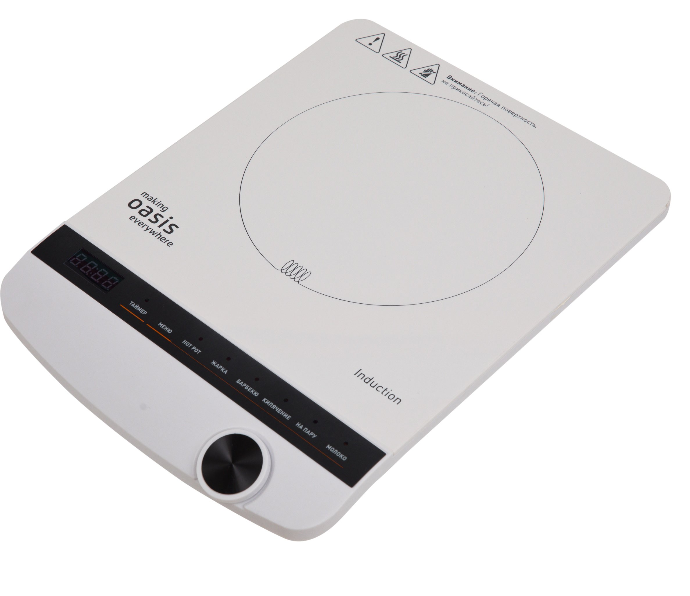 Плитка электрическая OASIS РI-W3SK белая 2000Вт,индукция,таймер,сенсорно-кноп.управление