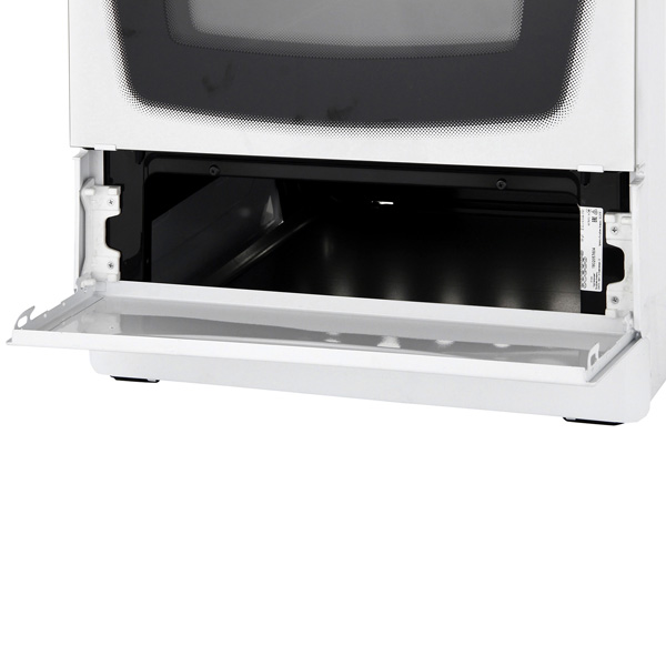 Эта модель оборудована четырьмя конфорками различной мощности. Также в ней предусмотрен вместительный духовой шкаф, объём которого составляет 63 литра.