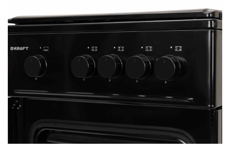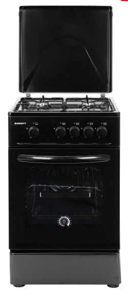 Газовая плита Kraft KF-FSK5301GBL в черном цвете сочетает в себе функциональный дизайн и простоту управления. Данная модель оборудована четырьмя газовыми конфорками  и газовым духовым шкафом объемом 58 литров, оснащенным системой газ-контроля. Уровень нагрева духовки определяется с помощью термометра. В комплект входит набор съемных жиклеров для перевода плиты на необходимое газоснабжение.