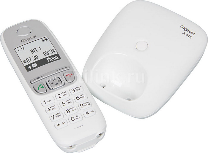 Радиотелефон Gigaset A415 – это удобный, многофункциональный аппарат. Его главные преимущества – хорошее качество звука и энергосберегающий блок питания. Корпус выполнен из прочного пластика белого цвета, а благодаря современному дизайну эта модель хорошо смотрится как дома, так и в офисе. Радиотелефон Gigaset A415 оснащен удобной навигацией. В адресной книге можно хранить 100 телефонных номеров, что позволяет нажатием нескольких кнопок найти нужный контакт. В памяти остается 20 последних набранных номеров, которые можно быстро перенабрать. Телефоном комфортно пользоваться даже в темноте, так как трубка оснащена светящимися кнопками и экраном. На открытом пространстве радиус действия базы – 300 м, поэтому можно свободно передвигаться во время разговоров.