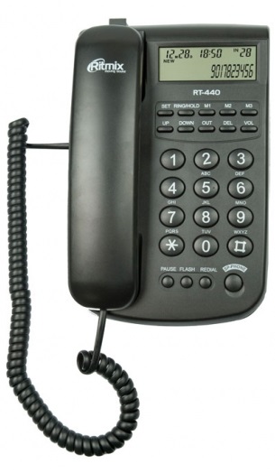 Ritmix RT-440 – это качественный телефон с дисплеем и определителем номера по доступной цене. Он подходит как для использования в офисе, так и на производстве или дома. Надёжный и удобный, с сохранением номеров в памяти телефона и всеми базовыми функциями.