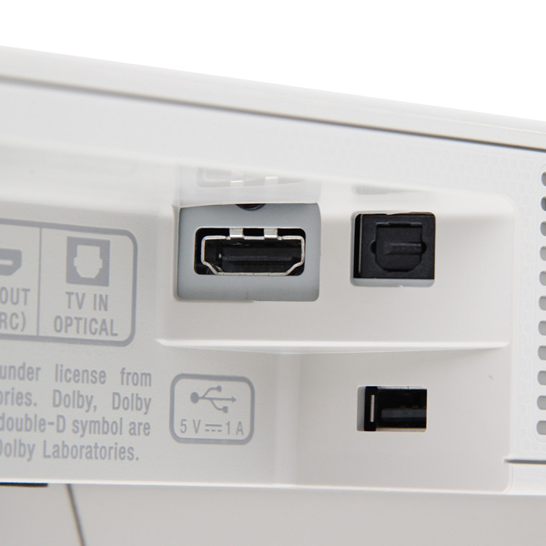 Устройство снабжено оптическим цифровым входом и проходным портом HDMI-ARC. В нём также предусмотрен разъём USB для воспроизведения аудиофайлов с флешек и других накопителей информации.