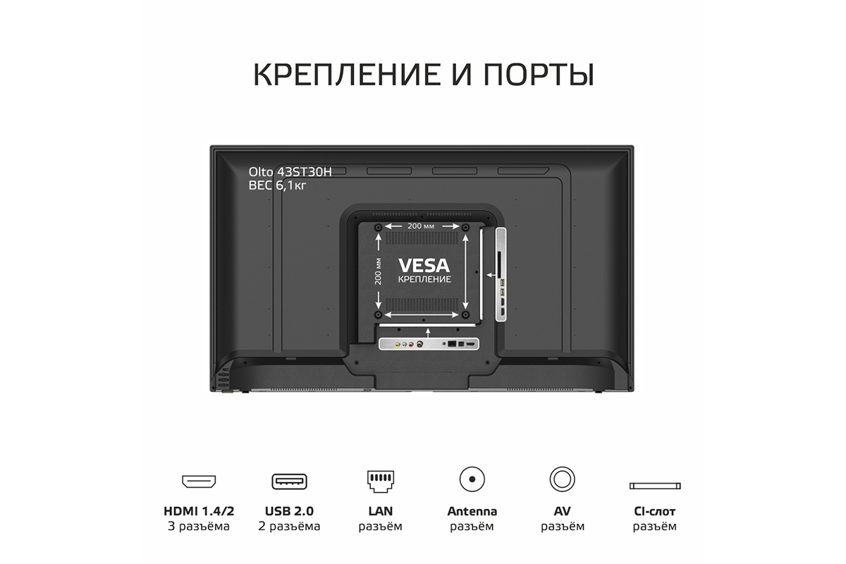 LED телевизор OLTO 43ST30H с поддержкой Smart TV, Wi-Fi и приемом цифрового сигнала