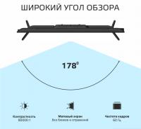 Диагональ экрана40/101 Системы цветности аналогового ТВSECAM / PAL Системы цветности для AVSECAM / PAL Цифровой тюнер DVB-T/T2да Функция SMARTда Версия ОСAndroid 11 Оперативная память1 Гб Внутренняя память8 Гб Декодеры стереозвукаA2 / NICAM Формат изображения16:9 Разрешение экранаFULL HD 1920x1080 Динамический контраст80000:1 Яркость240 Угол обзора (гор/верт)178/178 Цифровой 3D фильтрда Количество цветов16,7 млн. Время отклика8 мс Меню на русском, английском языкахда Телетекстда Звук мощность2x8 Вт Антенный входда Композитный AV вход / CVBS+ Audio R/Lда Аудио выход 3.5 ммда Аудио вход для ПКда HDMI3 x 1.4 Цифровой аудио выход / Digital Audio Outда USBUSB 2.0 x 2 СI слотда Напряжение110-240V 50/60 Гц Макс. потребляемая мощность70 Вт Потребляемая мощность в режиме ожидания0.5 Вт Вес без подставки5.2 кг Размеры с подставкой892х564х213 мм. Размеры без подставки892х507х88 мм. Цвет Комплект поставкиТелевизор, ПДУ, батарейки ААА - 2 шт., подставка - 2 шт., комплект винтов для крепления подставки, инструкция пользователя, гарантийный талон Bluetooth5.0 Яндекс ТВда Голосовой помощникАлиса