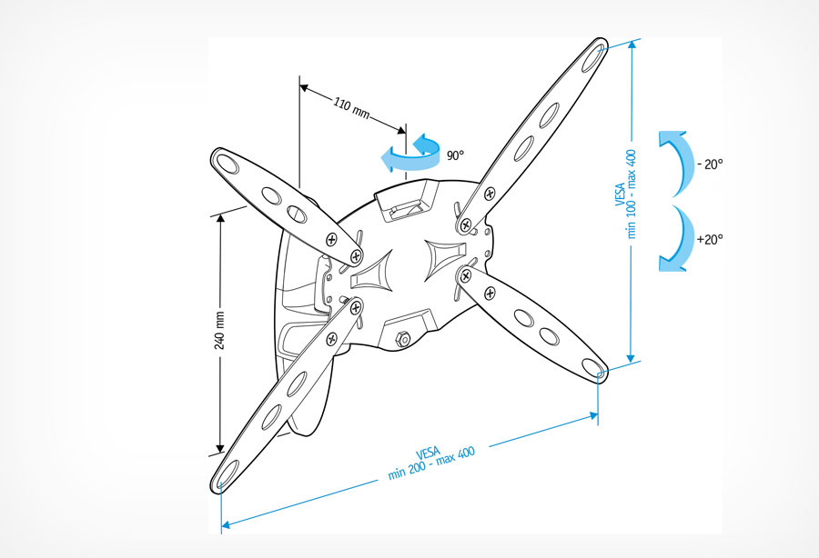 | Размеры | Vesa 200х200, 200х300, 300х300, 340х120, 400х200, 400х400 мм |