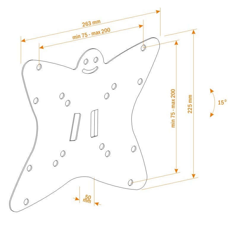 - размеры крепежных отверстий (мм): 75×75, 100×100, 200×100, 200×200