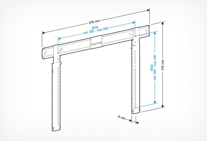 | Размеры | Vesa 200х200, 200х300, 300х300, 400х200, 400х400, 600х400 мм |
