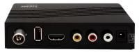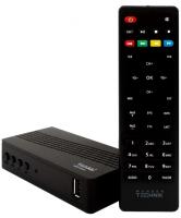 В комплект входит пульт дистанционного управления с двумя батарейками ААА. Есть разъем для HDMI. Передача данных осуществляется благодаря технологии Miracast. Приставка поддерживает DVB-T, DVB-T2 и DVB-C.