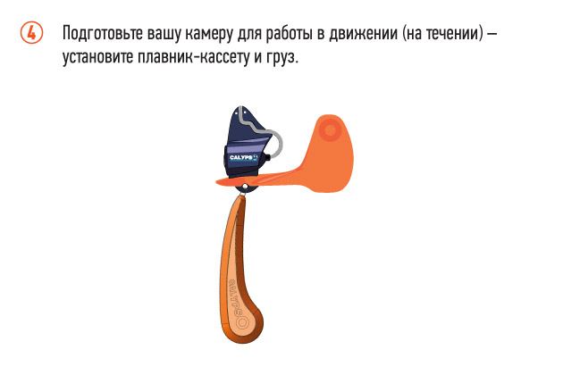 Подготовьте вашу камеру для работы в движении(на течении) — установите плавник-кассету и груз.