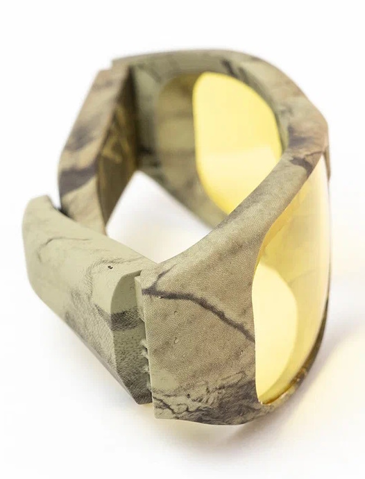 Корпус изделия выполнен из высококачественного материала TR90 (гриламид) со специальным, гипоалергенным покрытием поверх которого нанесен профессиональный принт цвета Хаки (Камуфляж). Чрезвычайно легкая, гибкая и долговечная оправа, что делает очки идеальными для любого применения.
