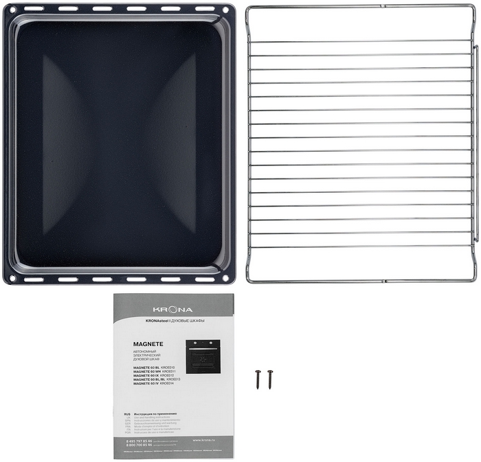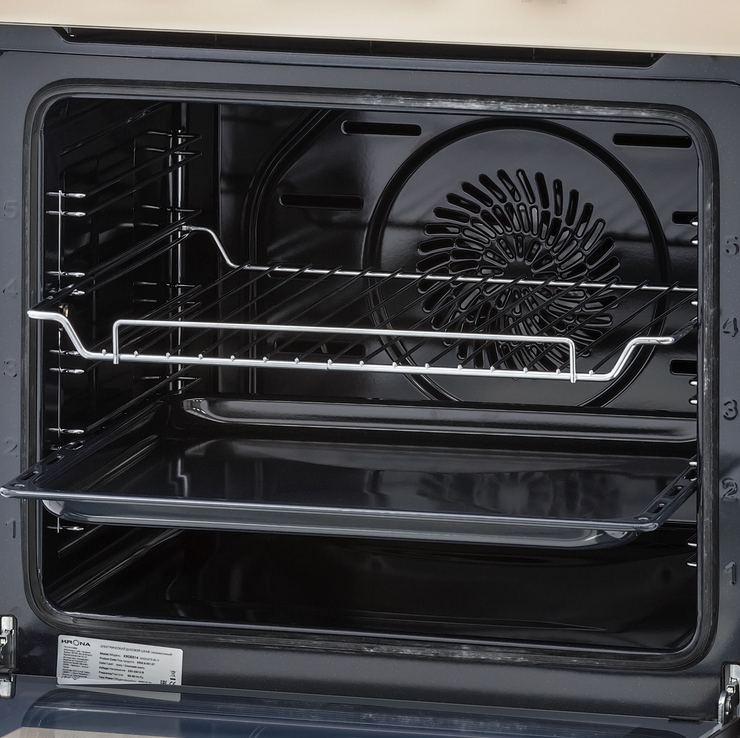 Духовой шкаф Krona MAGNETE 60 IV представлен в уникальном цвете «слоновая кость». Модель относится к электрическому типу. Ниша для встраивания имеет следующие габариты: 60×56×55 см. Внутреннее пространство покрыто эмалью легкой очистки Easy Clean, которая способствует быстрому устранению даже въевшихся загрязнений. Освещение позволяет наблюдать за рабочим процессом, не нарушая герметичности. Класс энергопотребления A является стандартным для данного вида бытовой техники. Полезный объем составляет 66 л, данного пространства достаточно для удовлетворения ежедневных бытовых нужд среднестатистической семьи. Электронное управление, простое и интуитивно понятное, осуществляется по средствам поворотных переключателей и программатора, надежность которого доказана временем. Вся необходимая информация выводится на сенсорный дисплей со встроенным таймером. Который своевременно оповестит о готовности блюда приятным звуковым сигналом. Дверца оснащена съемным механизмом, облегчающим эксплуатацию. В базовый комплект входят: стандартный противень и решетка для гриля. Гарантия от производителя составляет пять лет с даты приобретения.