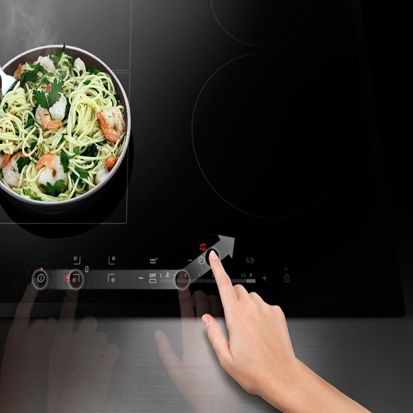 Сенсорное управление Slider. Широкий и интуитивно понятный сенсорный Slider позволяет быстро и точно управлять температурой приготовления пищи. Вы можете просто коснуться и скользить пальцем по панели управления, чтобы мгновенно установить или настроить уровень температуры для каждой конфорки одним легким движением. Так как наш Slider почти в два раза шире обычных элементов управления, Ваши действия будут очень точны.