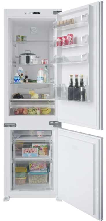 Встраиваемый двухкамерный холодильник-морозильник BRISTEN FNF выполнен в белом цвете шириной встраивания 60 см. Холодильная камера оснащена 4 стеклянными полками, 4 дверными полками, а также зоной свежести CRISPER ZONE с контроллером влажности Humidity Control, который поможет создать оптимальные условия хранения для разных фруктов и овощей. Морозильная камера предусматривает 3 уровня хранения: откидную полку и 2 ящика. Холодильник оснащен статической системой охлаждения с капельной разморозкой холодильного отделения и полностью автоматической разморозкой No Frost морозильного отделения. Модель BRISTEN FNF отличается высоким классом энергоэффективности А+, благодаря которому годовое потребление электроэнергии составляет всего 274 кВт. Для вашего удобства мы предусмотрели буковую LED-подсветку, которая освещает все уровни хранения в холодильном отделении. Для быстрого охлаждения большого количества продуктов вы можете воспользоваться функцией Super Cool, при активации которой происходит автоматическое понижение температуры в холодильной камере до +2 °С в течение 5 часов, после чего холодильник переходит в обычный режим работы.